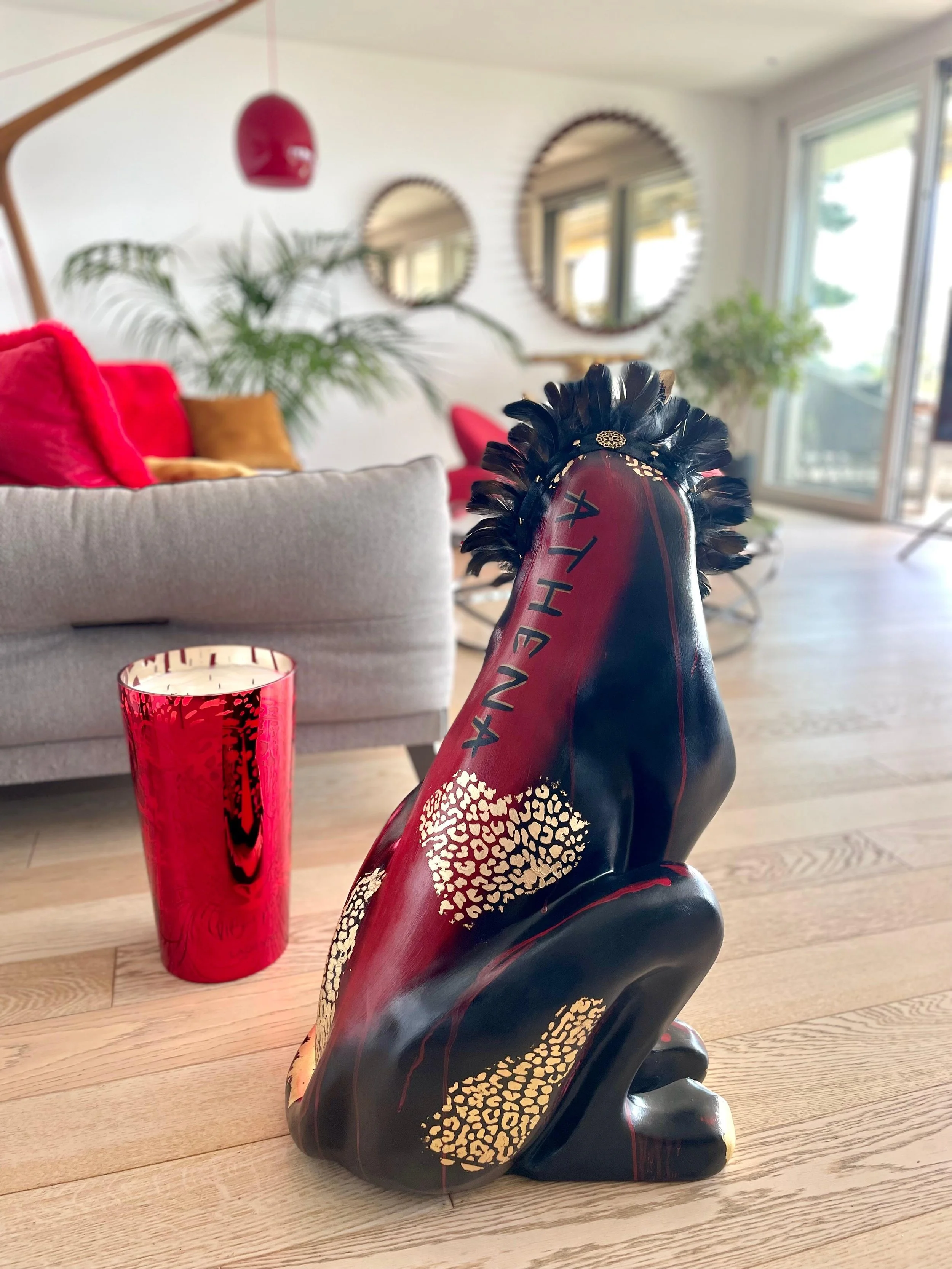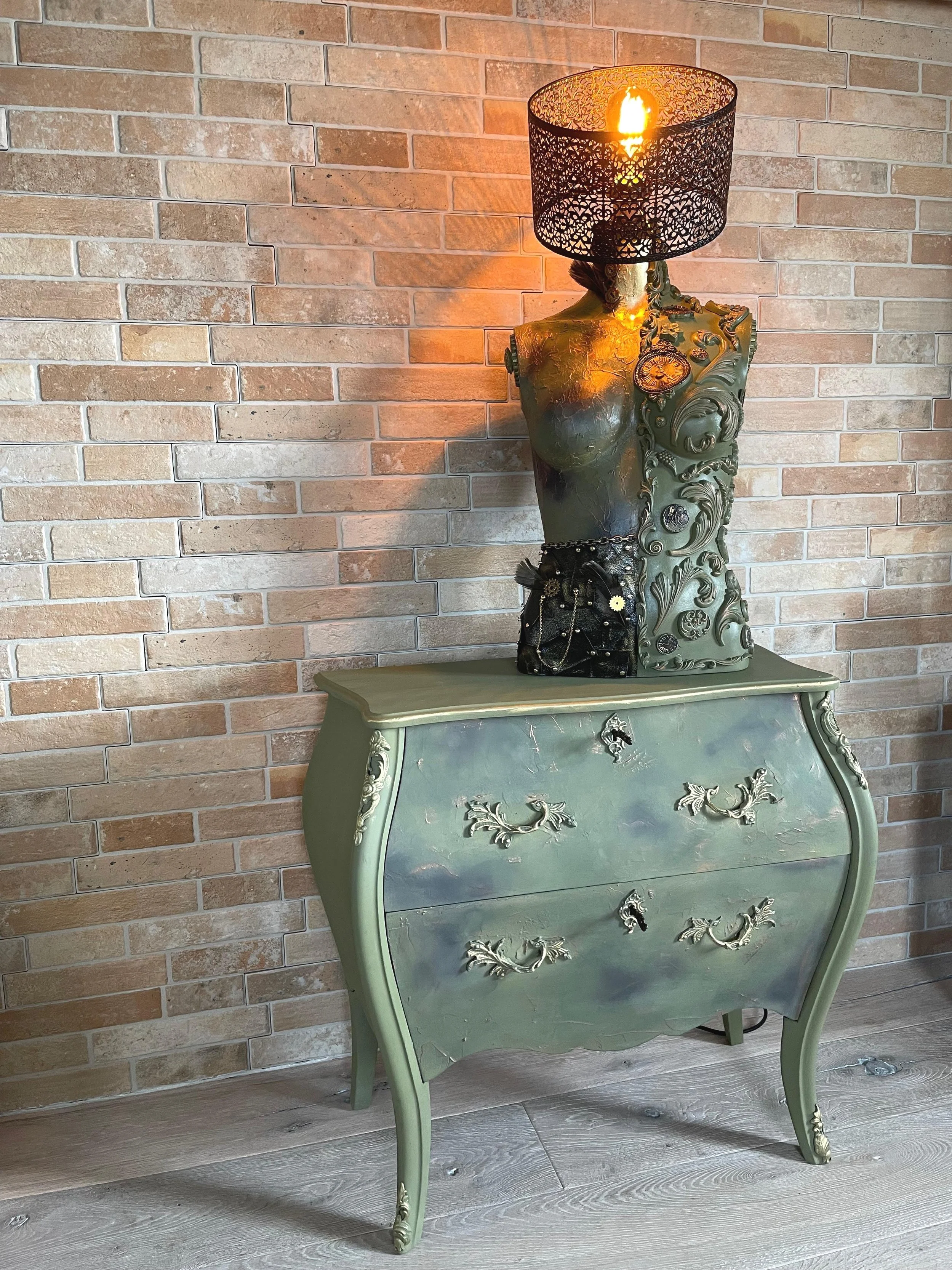 Dans un esprit de transformation et de réinvention, ces anciens mannequins de vitrine retrouvent une nouvelle vie en se métamorphosant en lampes. Personnalisables à l’infini, l’Atelier de Sandy les sublime grâce à différentes techniques de mix media : peinture, moulures, breloques, découpage de papier, pâtes à structure, feuille d’or, et bien plus encore.